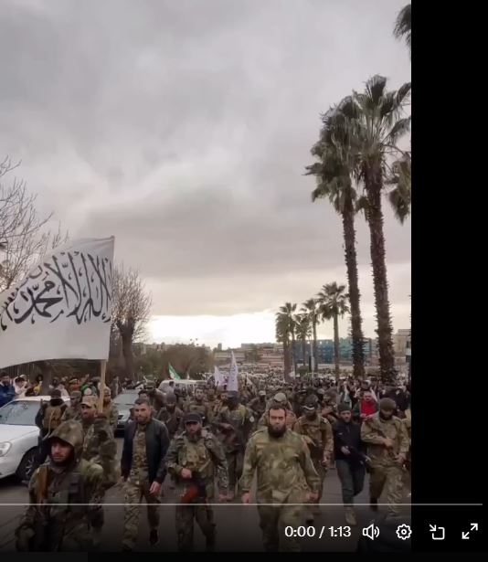 Παρέλαση των σουνιτικών SS στους δρόμους της Δαμασκού. Ονομάζονται τάγμα Khalid Ibn Al Walid από το όνομα του μουσουλμάνου στρατηγού που κατέκτησε τη βυζαντινή Συρία τον 7ο αιώνα μ.X. Να σημειωθεί ότι ο αλ Τζουλάνι, ο νέος κύριος της τ. Συρίας, κατηγορεί τους Σιίτες ότι ζουν στον 7ο αιώνα δηλ. ότι είναι Βυζαντινόφρονες αφού οι Σιίτες Συρίας δήλωναν στις αρχές του συριακού εμφυλίου ότι προτιμούν Βυζαντινή Αυτοκρατορία αντί της Οθωμανικής..