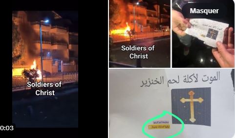 Ένα αυτοκίνητο που ανήκε σε μια χριστιανική οικογένεια κάηκε στη συνοικία Al Madine στη Χάμα, και πετάχτηκαν φυλλάδια στη γειτονιά που έγραφαν: «Θάνατος σε όσους τρώνε χοιρινό κρέας» και απειλούν με νέες προκλήσεις «Μείνετε συντονισμένοι για νέες κυκλοφορίες».