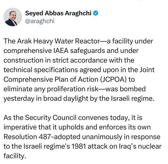 Ο Ιρανός Υπουργός Εξωτερικών, Seyed Abbas Araghchi, σε ανάρτησή του στην αγγλική γλώσσα, προκειμένου να ενημερωθεί η διεθνής κοινή γνώμη για την επιπολαιότητα του Ισραήλ σε σχέση με τα Πυρηνικά, έγραψε: