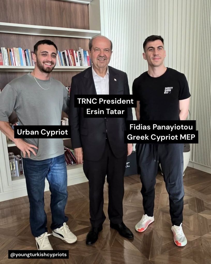 Σελίδες από Τουρκία και κατεχόμενα, αλλά και ο ίδιος ο Τ/κ ηγέτης δημοσίευσαν φωτογραφίες με την παρουσία του ευρωβουλευτή στο «προεδρικό», ενώ ο λογαριασμός urban Cypriot, ο Τουρκοκύπριος influencer που έκανε και βίντεο με τον Φειδία, έγραψε στον λογαριασμό του ότι «συμβαίνει κάτι αυτή τη στιγμή που θα μείνει στην ιστορία της Κύπρου».