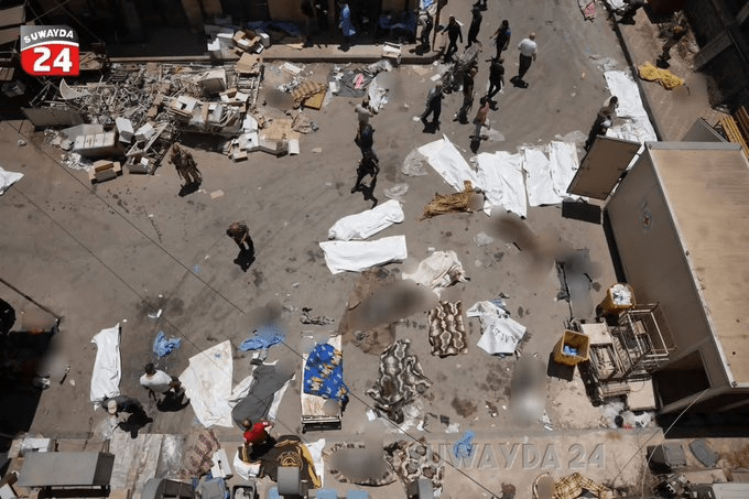 Το εκτός λειτουργίας Εθνικό Νοσοκομείο Σουέιντα έχει μετατραπεί σε μαζικό τάφο. Εκατοντάδες πτώματα των κατοίκων της επαρχίας έχουν στοιβαχθεί, συμπεριλαμβανομένων παιδιών που πέθαναν στις θερμοκοιτίδες τους. Δεκάδες χιλιάδες κάτοικοι έχουν εκτοπιστεί σε αγροτικές περιοχές κοντά στα συριακά ανθρωπιστικά σύνορα, εν μέσω μιας ανησυχητικής σιωπής των μέσων ενημέρωσης και της διεθνούς κοινότητας σχετικά με τις συνεχιζόμενες σφαγές που διαπράττονται εναντίον του λαού μιας ολόκληρης επαρχίας, χωρίς καμία διάκριση.