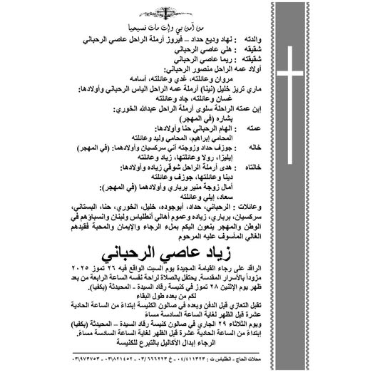 «Ο Ζιάντ ήταν μια φυσική προέκταση της οικογένειας Ραχμπάνι, η οποία έδωσε στον Λίβανο πολλή ομορφιά και αξιοπρέπεια», πρόσθεσε ο πρόεδρος.