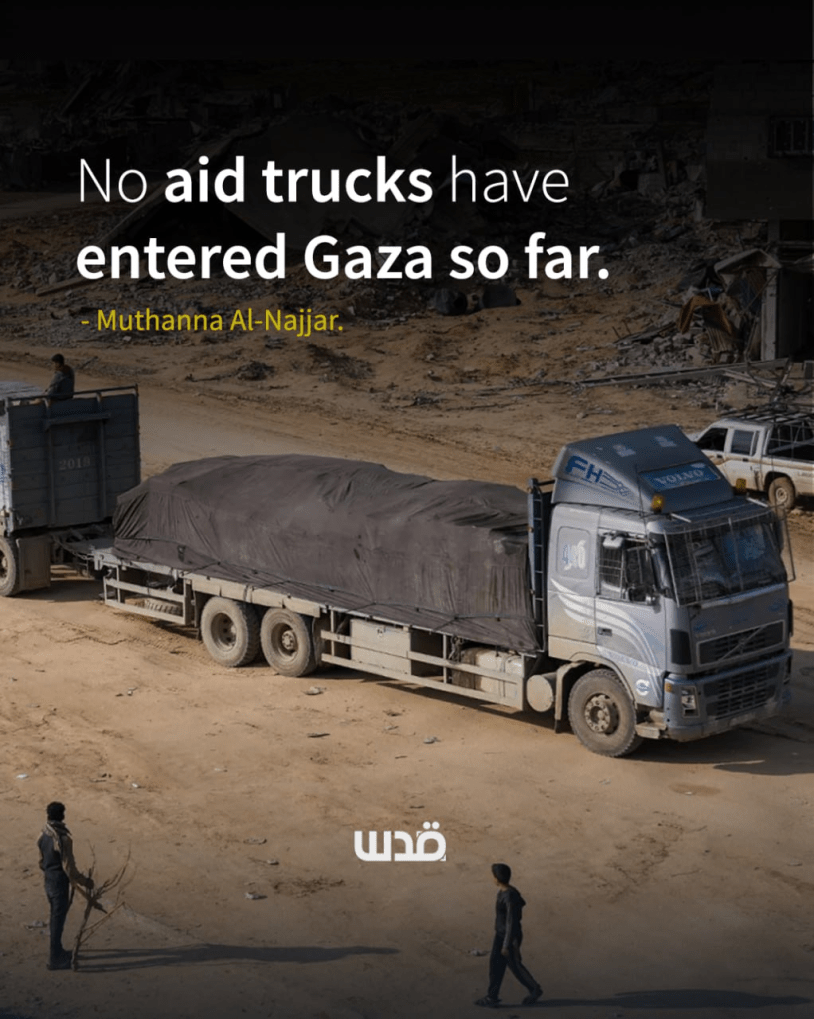 Παρά τις αυξανόμενες αναφορές ότι καμιόνια ανθρωπιστικής βοήθειας από την Αίγυπτο και την Ιορδανία θα αρχίσουν να εισέρχονται στη Γάζα σήμερα, δημοσιογράφοι επί του πεδίου επιβεβαιώνουν ότι, μέχρι στιγμής, δεν έχει επιτραπεί η είσοδος σε φορτηγά.