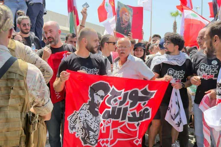 Περιγράφει τη Γαλλία ως χώρα «οργανικά συνδεδεμένη με το Ισραήλ, ιστορικά και μέσω συμφερόντων» και λέει ότι «δηλώνει ανοιχτά την εχθρότητά της προς το αραβικό εθνικό κίνημα». Ωστόσο, τονίζει ότι ο Λίβανος -παρά τη γεωγραφική του μικρότητα- παραμένει πηγή ζωής και αγώνα. Δηλώνει: «Ήμουν μαχητής και θα παραμείνω. Πέρασα 41 χρόνια στη φυλακή και 21 χρόνια πριν από αυτό στον αγώνα. Η θέση μου καθορίζεται από τη μάχη, αλλά η ελπίδα μου μεγαλώνει όταν βλέπω αυτή την ευρεία λαϊκή συμμαχία ενάντια στο σχέδιο σομαλοποίησης του Λιβάνου». Προειδοποιεί για τις προσπάθειες μετατροπής του Λιβάνου σε «ευαίσθητο σημείο που φυλάσσεται από το Ισραήλ», εξηγώντας ότι «ο Λίβανος δεν είναι εύθραυστος, αλλά μάλλον ένα φρούριο ανθεκτικότητας. Όποιος στέκεται μόνος του απέναντι στο Ισραήλ αξίζει τον σεβασμό του αραβικού κόσμου, όχι την εγκατάλειψή του». Πρόσθεσε: «Οι γειτονιές μας στη Βηρυτό βομβαρδίστηκαν και δεν βρήκαμε ούτε μια αραβική χώρα να παράσχει στον στρατό έναν πύραυλο. Σήμερα, η αντίσταση (Χεζμπολάχ) καλείται να αφοπλιστεί, χωρίς κανείς να προσφέρει εναλλακτική λύση. Εμείς είμαστε αυτοί που θα αποκαταστήσουν την αξιοπρέπεια του στρατού και εμείς -μαζί με τον λαό μας- συμφωνούμε: ο Λίβανος προστατεύεται μόνο από τον ισχυρό στρατό του».