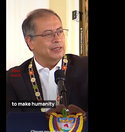 Αυτό λέει ο Πρόεδρος της Κολομβίας, πρώην αντάρτης, Gustavo Petro, μιλώντας για τη Γάζα. Με καθαρότητα πολιτικής σκέψης που δεν υπάρχει στην -γερασμένη πολιτικά, αξιακά και ηθικά- γηραιά ήπειρο, με δυνατότητα ανάδειξης του γενικού από το μερικό, με πλήρη αντίληψη των άρρηκτων σχέσεων χρηματοπιστωτικού κεφαλαίου και εξουσίας.