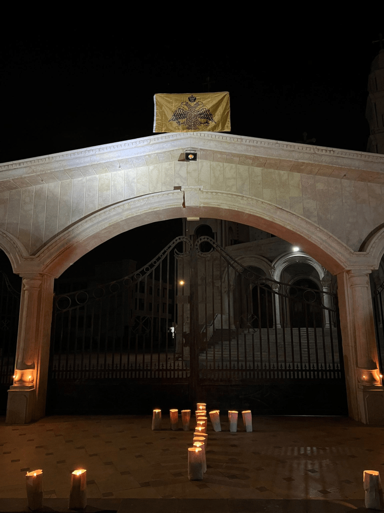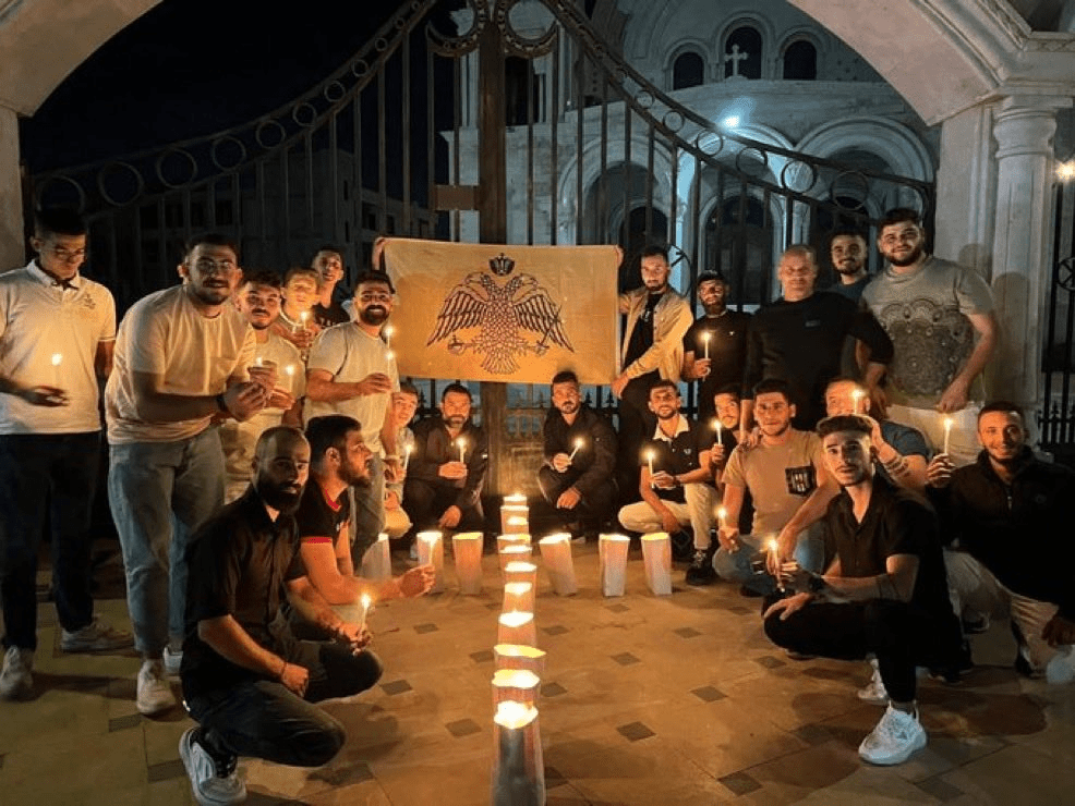 Στην ελληνορθόδοξη κωμόπολη ΚαφρΧάμπο/Kfarbo στα δυτικά της επαρχίας Επιφάνεια/Hama της Συρίας γεννέτειρα του νεαρού ιερομάρτυρα ιερομόναχου π.Βασίλειου Νάσερ που δολοφονήθηκε από τζιχαντιστές στην αρχή των γεγονότων στη Συρία όταν επιχείρησε να διασώσει τραυματία πολίτη εντός της πόλης Χάμα η νεολαία ύψωσε τη σημαία των Ρωμιών με δικέφαλο αετό και άναψαν κεριά μπροστά στις εκκλησίες συμπαραστεκόμενοι στους Χριστιανούς της Κοιλάδας των Χριστιανών που είχαν προχθές 2 μάρτυρες Ορθοδόξους Ρωμιούς από πυρά των παράνομων αρχών της ισλαμιστικής χούντας Τζολάνι….