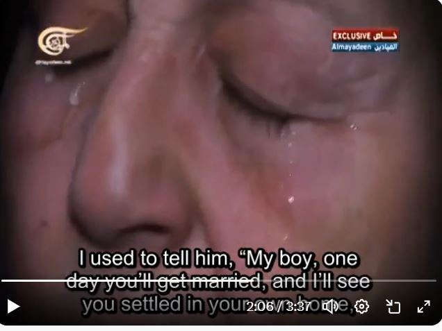 H μάνα λέει πως οι τζιχαντιστές την εκβίασαν για λεφτά ”φέρε τις καταθέσεις” της ζήτησαν λύτρα και τελικά της σκότωσαν το γιο με αυτό τον πρωτοφανή τρόπο. Τα δάκρυα της μάνας είναι φλόγες είναι φωτιά…