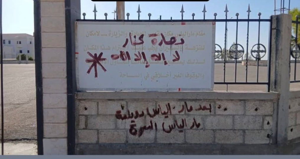 Ενώ το θηρίο κήρυξε το Κοράνι από Παγκόσμιου βήματος COP666 στη Βραζιλία τ΄ασκέρι του βανδάλισε και την Ορθόδοξη ανδρώα Μονή Προφήτη Ηλία στη Σαιντανάγια Συρίας στην περιφέρεια Δαμασκού όπου βρίσκεται και η γυναικεία μονή της Παναγίας Σαιντανάγια! έγραψαν απειλητικά συνθήματα: «Οι Χριστιανοί είναι άπιστοι. Μετά τον βομβαρδισμό του Προφήτη Ηλία στην Ντουέλα, είναι η σειρά σας.»