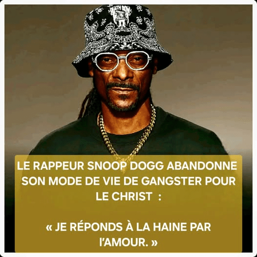 Ο Snoop αποκάλυψε ότι γνώρισε τον Χριστό και αποφάσισε να αφιερώσει τη ζωή του σε Αυτόν, χρησιμοποιώντας την ενέργειά του για να υπηρετεί τον Θεό για το υπόλοιπο της ζωής του.