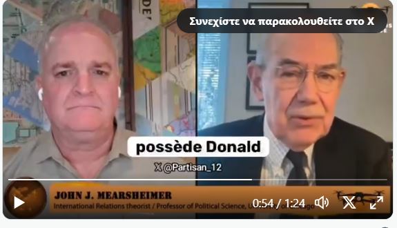 Ο Αμερικανός καθηγητής Πολιτικών Επιστημών στο Πανεπιστήμιο του Σικάγου ο John Mearsheimer καταγγέλει: ”Οι Ισραηλινοί μας κατέχουν χοντρά. Το Ισραηλινό λόμπι κατέχει τον Ντ.Τραμπ. Αυτό που θέλουν οι Ισραηλινοί το αποκτούν με τον Ντ. Τραμπ. Και οι Ισραηλινοί θέλουν να καταστρέψουν το Ιράν. Αυτοί είναι βαθύτατα αποφασισμένοι εδώ και πολύ καιρό να καταστρέψουν το Ιράν.”