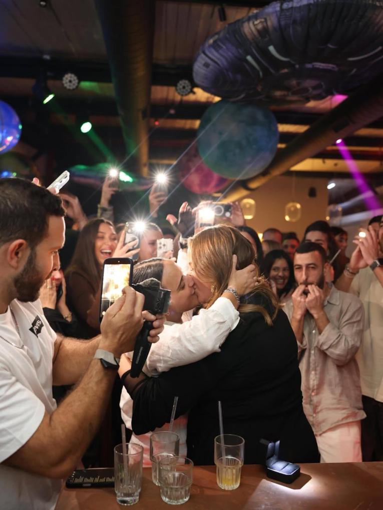 Οι δυο τους γιόρτασαν σε μια εκδήλωση για την επέτειο ενός έτους από την απελευθέρωση της Νταμάρι – και εκείνη γονάτισε και έκανε πρόταση γάμου στο(η)ν Άμιτ – και εκείνο(η) δέχτηκε αναφέρει η ynet..