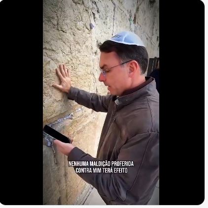 Ο χριστιανοσιωνιστής γιος του τ, προέδρου Βραζιλίας του Μπολσονάρο πήγε και προσευχήθηκε στο Τείχος των Δακρύων στην Ιερουσαλήμ για να πάρει το χρίσμα της προεδρίας στις προεδρικές εκλογές του 2026 που είναι υποψήφιος. Όποιος αγγίζει το Τείχος των Δακρύων γίνεται πρόεδρος στη χώρα του..Η παρουσία στο Ισραήλ του Φλάβιο Μπολσονάρο, γιου του πρώην προέδρου της Βραζιλίας Ζαΐχ Μπολσονάρο, δεν είναι απλώς ένα προσωπικό ή πνευματικό ταξίδι. Δημοσιεύοντας ένα βίντεο που γυρίστηκε σε ισραηλινό έδαφος, συνοδευόμενο από ένα μήνυμα γεμάτο θρησκευτικές και ιδεολογικές αναφορές, ο δηλωμένος υποψήφιος για τις προεδρικές εκλογές της Βραζιλίας το 2026 στέλνει ένα σαφές πολιτικό μήνυμα τόσο στους υποστηρικτές του όσο και στους αντιπάλους του. Το μήνυμα είναι σαφές: η πίστη, η πολιτική καταγωγή και ο εθνικός αγώνας είναι άρρηκτα συνδεδεμένα.