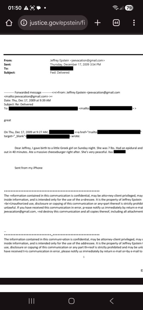 Μια στέλνει email στον Εpstein ότι γέννησε κορίτσι Ελληνίδα δηλ. παιδί Έλληνα..Ποιος ο εκβιαζόμενος;