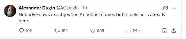 Δήλωση ΣΟΚ από το νο 1 Ρώσο διανοούμενο τον Αλεξάντερ Ντάγκιν μετά τις Αποκαλύψεις Επστάιν:” Κανείς δεν ξέρει ακριβώς πότε έρχεται ο Αντίχριστος, αλλά φαίνεται (υπάρχει η αίσθηση) ότι είναι ήδη εδώ.”