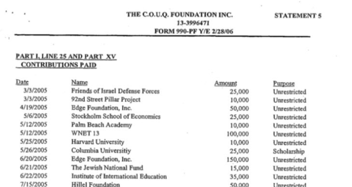Τα Αρχεία Έπσταϊν περιέχουν οικονομικά έγγραφα που αποδεικνύουν ότι ο Τζέφρι Έπσταϊν χρηματοδότησε τον ισραηλινό στρατό μέσω του φιλανθρωπικού οργανισμού «Φίλοι των Ισραηλινών Αμυντικών Δυνάμεων».