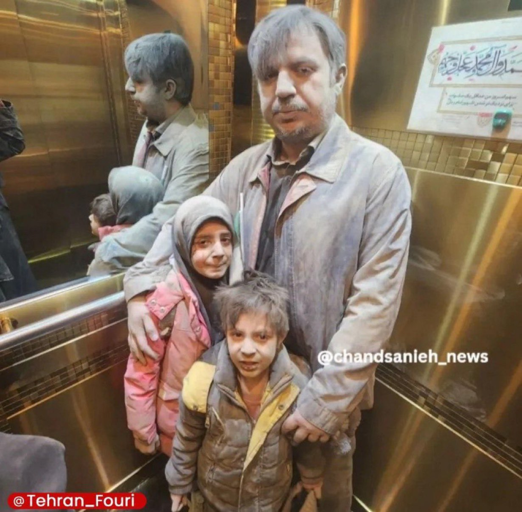 «Τεχεράνη, φωτογραφία ενός πατέρα και των δύο παιδιών του παγιδευμένων στον δρόμο από αμερικανικές και ισραηλινές βόμβες».
