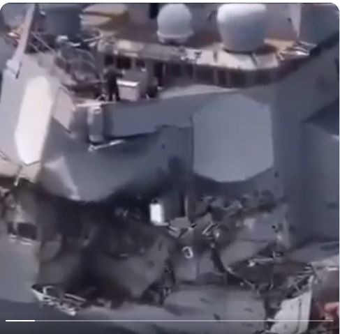 Σύμφωνα με αναφορές των υπηρεσιών πληροφοριών που επικαλείται η υπηρεσία, ξέσπασε μεγάλη πυρκαγιά στα καταστρώματα και των δύο πλοίων, με πυκνά σύννεφα καπνού να υψώνονται πάνω από τον ωκεανό.