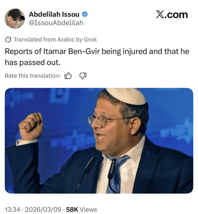 Ισχυρίστηκε επίσης ότι το σπίτι του Ιταμάρ Μπεν-Γκβιρ χτυπήθηκε και ότι ο Μπεν-Γκβιρ τραυματίστηκε σοβαρά.