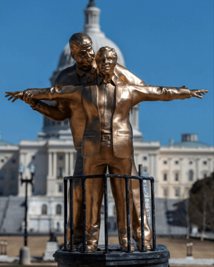 Ο Τραμπ αγκαλιάζει τον Έπσταϊν μπροστά από το Καπιτώλιο. Γλυπτό με τίτλο ”ο Άρχων του κόσμου”. δεν είναι τυχαίο ότι το σύμπλεγμα σχηματίζει σταυρό παραπέμπει.. στον Αντίχριστο..