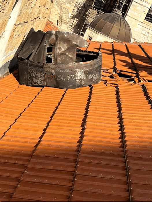 Θραύσμα πυραύλου από τον ιρανο-ισραηλινο-αμερικάνικο πόλεμο έπεσε στο πατριαρχείο Ιεροσολύμων. Το κομμάτι έπεσε πάνω από το κελί,του Αρχιεπισκόπου Θαβωρίου κ. Μεθοδίου.