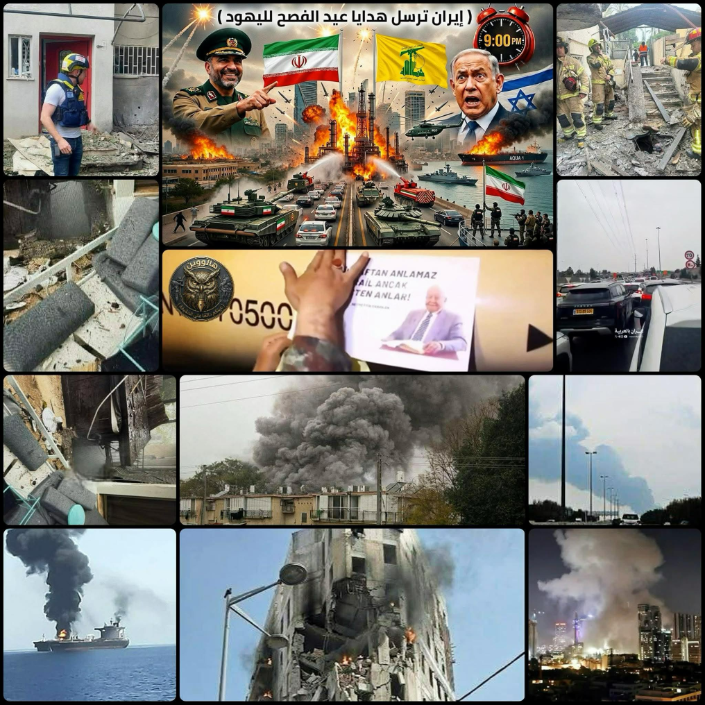 Πράγματι, έχει εκτοξευθεί το μεγαλύτερο κύμα πυραύλων από την αρχή του πολέμου, σύμφωνα με ρεπορτάζ της ισραηλινής εφημερίδας “Maariv” και των ισραηλινών καναλιών 12 και 14. Ο Ισραηλινός ειδικός σε θέματα ασφάλειας και πληροφοριών, Γιόσι Μέλμαν, δήλωσε: “Ατελείωτες ρίψεις πυραύλων πέφτουν βροχή στο Τελ Αβίβ και τα περίχωρά του. Φέτος, γιορτάζουμε το Πάσχα αλά ιρανικά.” Πράγματι, σήμερα πύραυλοι έχουν προσγειωθεί σε Τελ Αβίβ και την καρδιά των κατεχόμενων εδαφών, με τρομακτική ακρίβεια! Ο δημόσιος ισραηλινός ραδιοφωνικός σταθμός ανέφερε: ” Ένα εξαιρετικό γεγονός εκτυλίσσεται αυτή τη στιγμή στο Ισραήλ. Οι περισσότεροι από τους πυραύλους είναι πυρομαχικά διασποράς, πέφτουν παντού, συμπίπτοντας με το Πάσχα.” Θραύσματα πυραύλων έχουν πέσει σε διάφορες τοποθεσίες στο κεντρικό Ισραήλ, συμπεριλαμβανομένων των Ραμάτ Γκαν, Ρος ΧαΑγίν, Πέταχ Τίκβα, Μπατ Γιαμ, Χολόν και ανατολικό Τελ Αβίβ! Η ιρανική επίθεση στο Ισραήλ είναι αυτή τη στιγμή η μεγαλύτερη από την αρχή του πολέμου. Σήμερα οι διοικητές των Περσών ήταν πιο γενναιόδωροι από το συνηθισμένο… όλοι οι πύραυλοι έπεσαν με άμεσες επιθέσεις για τον εορτασμό της γιορτής… Το αστείο είναι ότι κάποιοι έποικοι ήταν έξω εορτάζοντας , νομίζοντας ότι όλα θα περάσουν και ότι αυτός ο πόλεμος δεν έχει κανέναν υπεύθυνο, κανέναν που να ονομάζεται Χ. Αλ-Θάουρα, κανέναν που να μπορεί να τους κρατήσει στα σπίτια τους! Και πράγματι, θραύσματα πυραύλων έπεσαν στους αυτοκινητόδρομους, αναγκάζοντας όλα τα αυτοκίνητα να σταματήσουν και τους εποίκους να βρουν καταφύγιο στα πεζοδρόμια… Αυτό το μποτιλιάρισμα προκάλεσε καταστροφή και οδήγησε στον θάνατο ορισμένων θυμάτων, επειδή τα αυτοκίνητα των εποίκων μπλόκαραν τα ασθενοφόρα! Αυτό ώθησε την ισραηλινή υπηρεσία ασθενοφόρων να εκδώσει την ακόλουθη δήλωση : “Δυστυχώς, η πρόσβαση στα σημεία πρόσκρουσης των πυραύλων ήταν αδύνατη λόγω των αδιάκοπων σειρήνων και της έντονης κυκλοφορίας στους δρόμους που οδηγούσαν στις περιοχές πρόσκρουσης, καθώς οι κάτοικοι ετοιμάζονταν να γιορτάσουν το Πάσχα.”