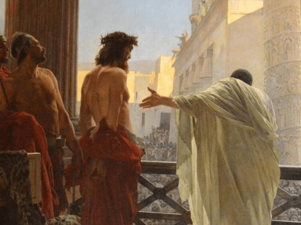“Το Συνέδριο των Ιουδαίων ίνα τον Δημιουργό και Κτιστή των Απάντων Πιλάτο παραδώσει. Ω των Ανόμων Ω των Απίστων….,” από την Υμνογραφία των ημερών.