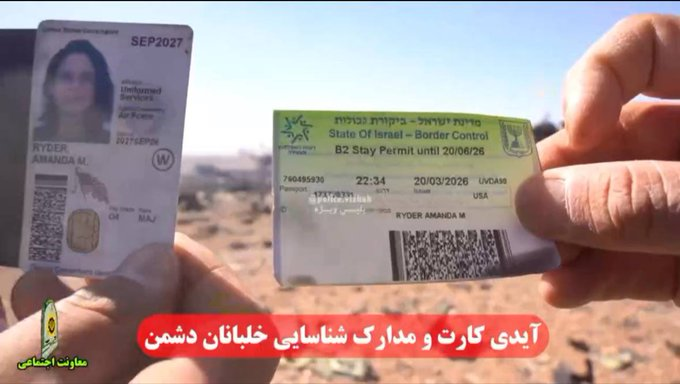 Στο σημείο της συντριβής και των σφοδρών μαχών νότια του Ισφαχάν, οι ιρανικές δυνάμεις ασφαλείας ανέκτησαν ενοχοποιητικά έγγραφα: αμερικανικές στρατιωτικές ταυτότητες, προσωρινές άδειες παραμονής που εκδόθηκαν από το Ισραήλ και άλλα προσωπικά αντικείμενα.