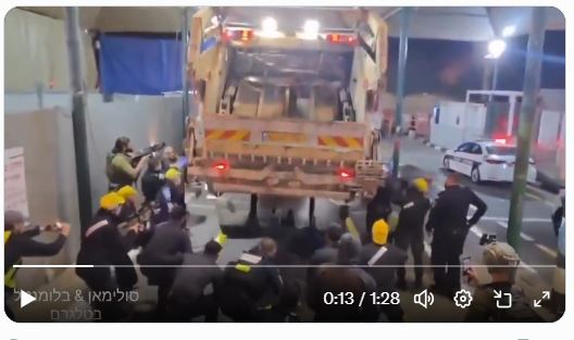 Με απορριμματοφόρο πετούν σαν σκουπίδια 60 Παλαιστίνιους οι Ισραηλινοί! Σιωνιστές ναζί , ”O πιο ηθικός στρατός του κόσμου”..το φως, ο πολιτισμός, ο περιούσιος και δήθεν εκλεκτός….. Είναι ναζί απολυμαίνουν τον κόσμο από τα μιάσματα της γης με το ίδιο σκεπτικό που με αέρια οι ναζί εξόντωναν τους προγόνους τους για να καθαρίσουν το κόσμο από την παγκόσμια μόλυνση ..