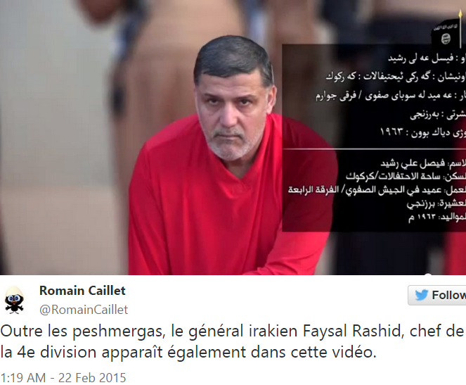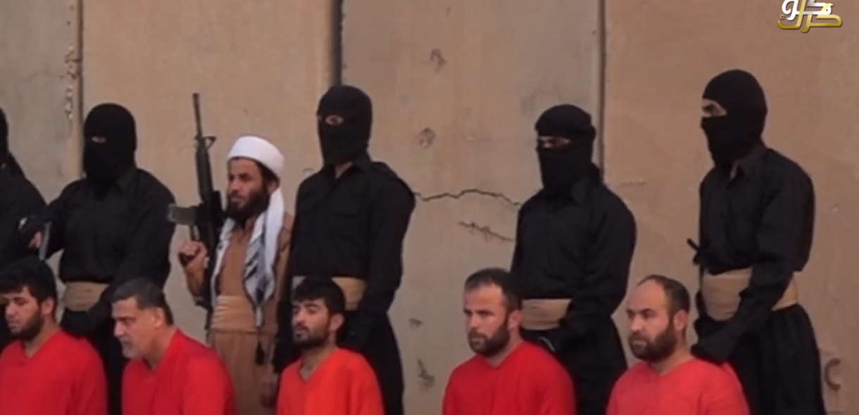 Οδηγούνται σε μια αλάνα.Οι δήμιοι του εκτελεστικού αποσπάσματος παίρνουν θέση πίσω από τα θύματα.Τα καθηλώνουν στα γόνατα με δεμένα τα χέρια και ελεύθερο το πρόσωπο.Το πιθανότερο τους αποκεφαλίζουν όπως παρόμοια εκτελεστικά αποσπάσματα έκαναν τόσο με σύριους στρατιώτες σε ομαδικό αποκεφαλισμό όσο και πριν από λίγες ημέρες στη Λιβύη με τους 21 Κόπτες.ΠΡΟΣΟΧΗ ΑΚΟΛΟΥΘΕΙ ΠΟΛΥ ΣΚΛΗΡΗ ΕΙΚΟΝΑ Continue reading “OΜΑΔΙΚΟΣ ΑΠΟΚΕΦΑΛΙΣΜΟΣ ΤΩΝ 21 ΚΟΥΡΔΩΝ ΜΑΧΗΤΩΝ ΣΤΟ ΙΡΑΚ ΑΠΟ ΤΗΝ ISIS (BINTEO)”