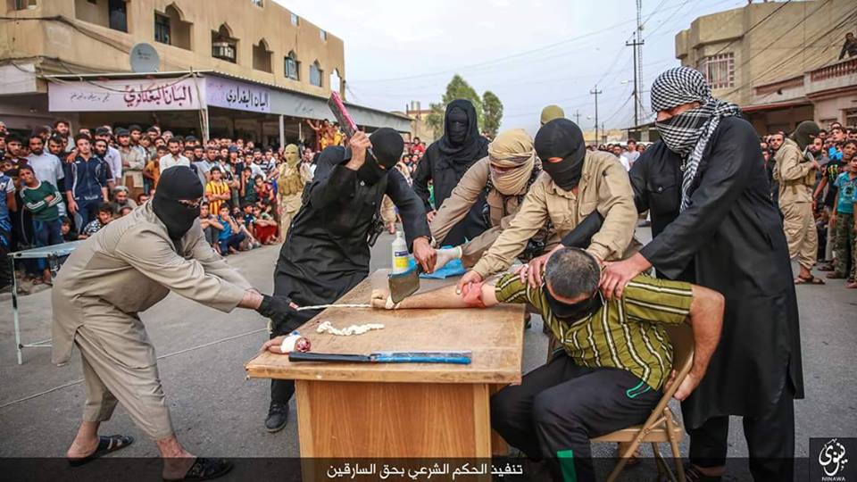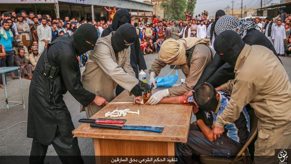 To oυαχαμπίτικο δίκαιο σαλαφιστικού τύπου και σαουδαραβικής νομιμοποίησης ασκείται καθημερινά πλέον στο Ιράκ….Μέλη της ΙSIS ακρωτηρίασαν τα χέρια δύο ανδρών που κατηγορήθηκαν για ληστεία. Η τιμωρία εφαρμόστηκε δημόσια και μπροστά σε πλήθος.