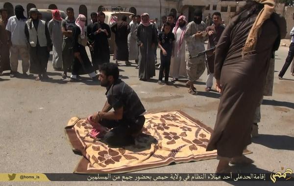 Το Ισλαμικό Κράτος έχει αναρτήσει άλλη μια δημόσια εκτέλεση από τη περιφέρεια της Homs.Πιθανότατα προέρχεται από την πόλη Shaar που κατέκτησαν οι τζιχαντιστές. Ίσως πρόκειται για εργαζόμενο στις εγκαταστάσεις φυσικού αερίου της περιοχής που πρόσφατα το Ισλαμικό Κράτος κατέκτησε και προέβη σε μαζικές εκτελέσεις.