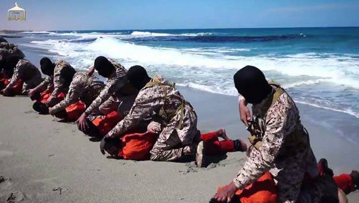 To Iσλαμικό Κράτος η ISIS την Κυριακή δημοσιοποίησε ένα βίντεο που διατείνεται ότι εμφανίζει την ομαδική εκτέλεση 30 χριστιανών αιθιόπων που αιχμαλώτισε στη Λιβύη. O επικεφαλής των εκτελεστών λέει απειλητικά στην αγγλική:”το αίμα των μουσουλμάνων που χύθηκε από τα χέρια των θρησκειών σας δεν είναι φθηνό.Στο έθνος του σταυρού :εμείς επιστρέψαμε.”(newsweek)Ο ίδιος μασκοφόρος και ντυμένος στα μαύρα κραδαίνοντας ένα πιστόλι πριν την εκτέλεση ορκίζεται ότι θα σκοτώσει τους χριστιανούς αν δεν προσηλυτιστούν στο ισλάμ εννοείται το σουνιτικό.