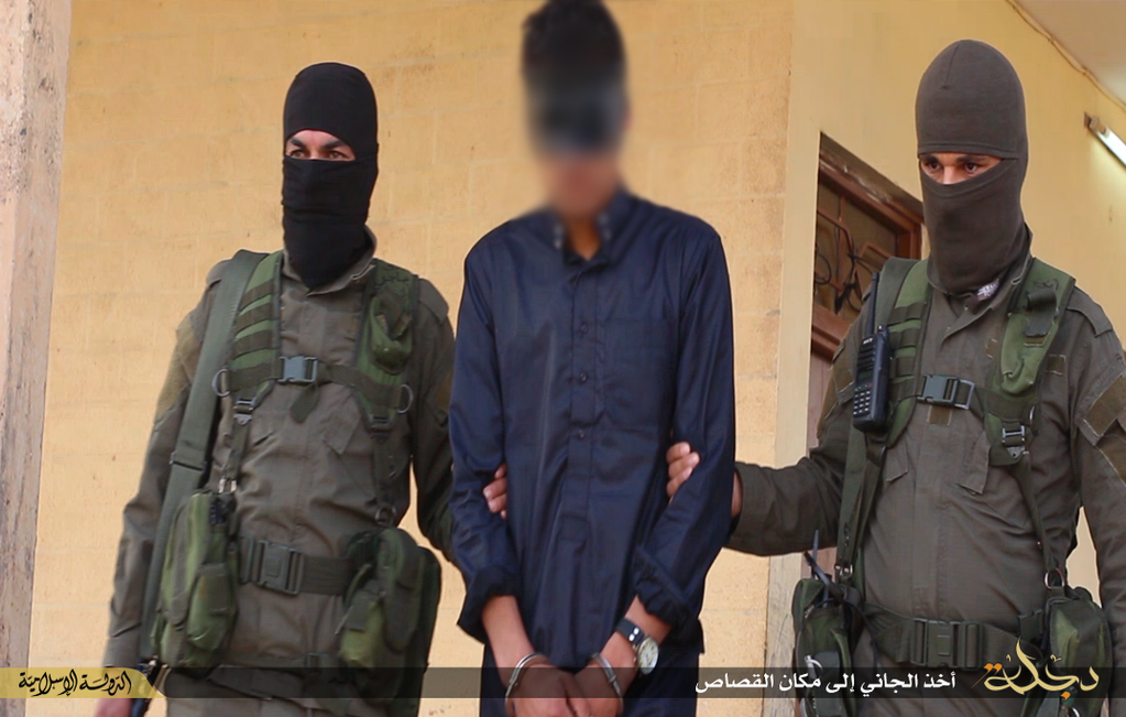 H ISIS δημοσιοποίησε σε λογαριασμούς της υλικό από την δημόσια εκτέλεση 2 ανδρών στη Συρία.Οι δήμιοι τους εκτελούν με πιστόλια εξ επαφής και πισώπλατα.Η κατηγορία που τους αποδόθηκε είναι ότι ο ένας ήταν πράκτορας που εκπαιδεύθηκε στην Τουρκία από τις ΗΠΑ και ο άλλος ότι ήταν μέλος του κουρδικού PKK.Τα θύματα έχουν δεμένα τα μάτια είναι στα γόνατα και φέρουν πορτοκαλί φόρμες.Η ανάρτηση έγινε πριν λίγες ώρες.